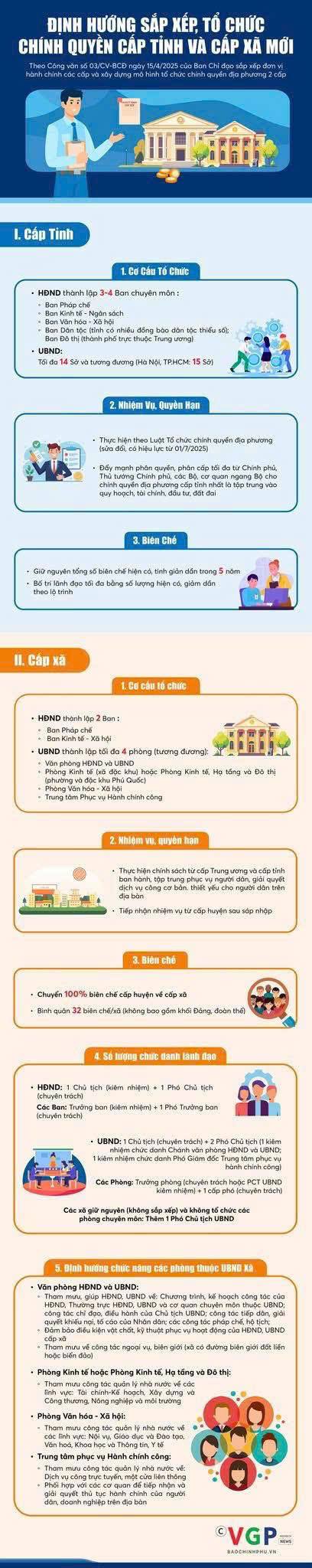 Infographics: Định hướng sắp xếp, tổ chức chính quyền cấp tỉnh và cấp xã mới